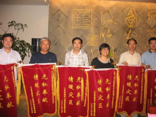 ![]() 向抗震救災(zāi)中無私奉獻、積極捐贈檢測儀器設(shè)備的單位和 做出突出貢獻的監(jiān)督機構(gòu)贈送錦旗,右三為中心楊曉虹總經(jīng)理