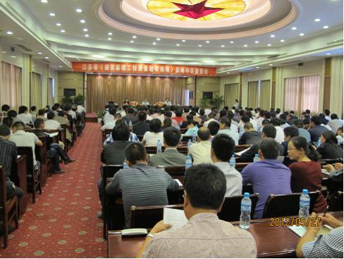 江蘇省工程建設標準《建筑幕墻工程質量驗收規程》 鹽城宣貫會成功舉辦 2012年9月27日和2012年10月12日,江蘇省建筑科學研究院、江蘇省建筑工程質量檢測中心在鹽城舉辦了兩場《建筑幕墻工程質量驗收規程》的宣貫。鹽城市及各區縣建筑工程質監站、檢測單位、建設單位、建筑裝飾企業、監理單位等500多人參加了本次會議。宣貫會取得圓滿成功,得到了與會人員的一致認可。 宣貫會上,規程主要編制人江蘇省建筑科學研究院張云龍主任針對標準編制背景、幕墻行業最新動態、標準涉及的要點難點以及工程驗收注意事項等進行了專業、細致的講解。江蘇省建筑工程質量檢測中心有限公司姜美琴高級工程師介紹了《建筑幕墻工程質量問題實錄》以及蘇建函科【2012】386號《關于加強我省建筑幕墻管理的通知》。 本次宣貫會的成功舉辦,將為提高鹽城地區監督、檢查、設計、監理、施工技術人員在幕墻工程質量管理和質量驗收方面知識,帶動蘇北地區幕墻工程質量管理發揮重要作用。
