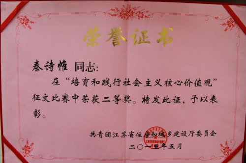 關于公布 “培育和踐行社會主義核心價值觀 ” 征文比賽獲獎名單的通知 廳屬各團委、 團支部 : 為進一步加強青年社會主義核心價值觀教育,結合共青團江蘇省省級機關工委有關要求,廳團委于2014年11月底開展了“培育和踐行社會主義核心價值觀“征文活動。自活動開展以來,各團組織精心組織,廣大團員青年積極響應、熱情參與、共收到各類征文 47篇。經過廳 內外評委的認真評審,徐淳同志獲一等獎,黃躍耀、秦詩帷、徐辰等 3名 同志獲二等獎,周鵬、夏森、楊浩、陸金波、史艷輝等5名同志獲三等獎;趙秀玲、祝侃、趙霽月、何陳晨、朱安寧、錢軍、王春等7名同志獲優秀獎。省建筑科學研究院團委獲優秀組織獎。希望獲獎單位和個人,珍惜榮譽,再接再厲,爭取新的更大的成績。同時,各團組織要以本次活動為契機,進一步深入推進社會主義核心價值觀主題教育活動,再團員青年中大力培育和踐行社會主義核心價值觀。 共青團江蘇省住房和城鄉建設廳委員會 2015年5月26日