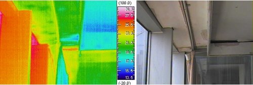 ![]() 紅外熱像法檢測某銀行辦公樓樓頂內表面(樓板裂縫導致屋內滲水)