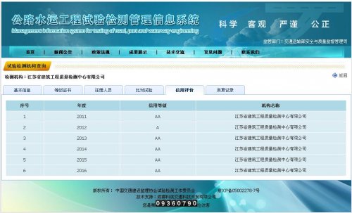 近日,在交通運輸部工程質量監督局《關于公布2016年度公路水運工程試驗檢測信用評價結果的通知》中,省檢測中心喜獲AA級信用評價,這是我中心連續五次被評為AA級信用。 信用評價是交通運輸主管部門對有公路水運試驗檢測工程師或檢測員證書的試驗檢測從業人員,以及取得公路水運工程試驗檢測等級證書,并承擔公路水運工程質量鑒定、驗收、評定(檢驗)、監測及第三方試驗檢測業務的試驗檢測機構的從業承諾履行狀況誠信行為的一種綜合評價。 此次榮獲AA等級信用評價,充分表明了主管部門對中心在公路水運工程試驗檢測領域誠信履約能力的肯定,為中心今后在公路水運工程試驗檢測領域的發展奠定了良好的基礎。 信用評價是一項長期的工作,中心將會繼續保持科學嚴謹的工作態度,嚴格按照信用評價的要求,規范執行標準化操作,進一步推動誠信準則,形成良好的工作氛圍,為促進試驗檢測市場的健康發展貢獻出一份力量。