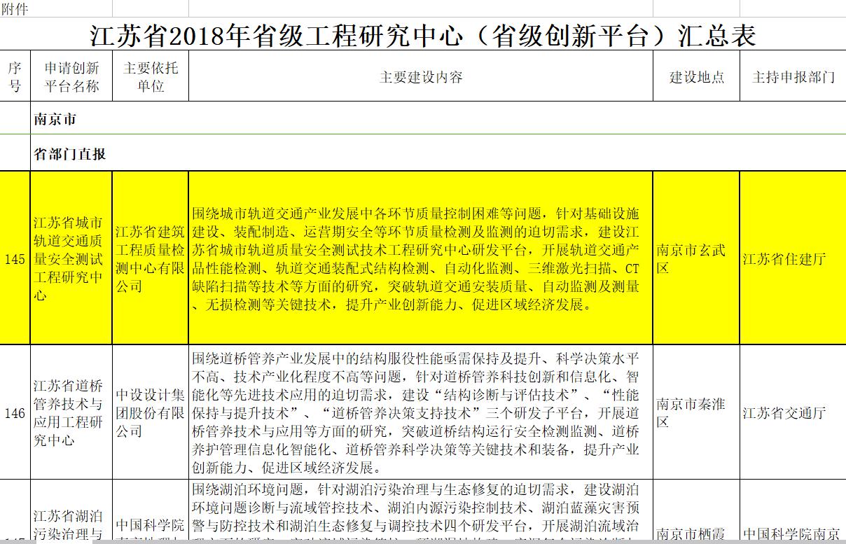 | 中心獲批“江蘇省2018年省級工程研究中心(省級創新平臺)” |