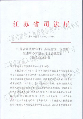司法鑒定所成立批文